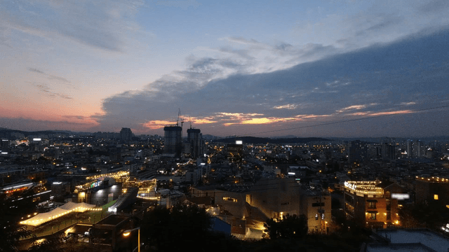 황혼에서 밤으로 변하는 도시