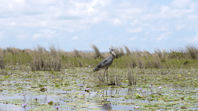 고요한 습지에 서 있는 새