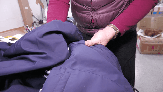 면도날로 자켓을 수선하는 손