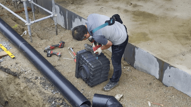 숲 속에서의 크레인을 사용한 풍력 터빈 건설 현장