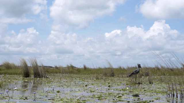 늪에 서 있는 슈빌 황새