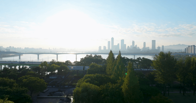 강 위의 다리와 도시 스카이라인