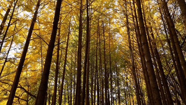 곧게 뻗은 샛노란 은행나무