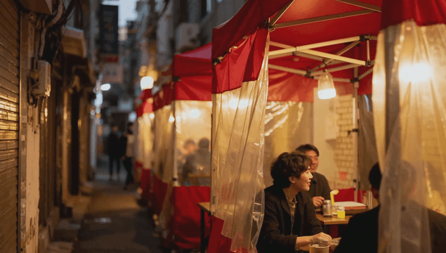 포장마차에서 소주를 즐기는 두 남자