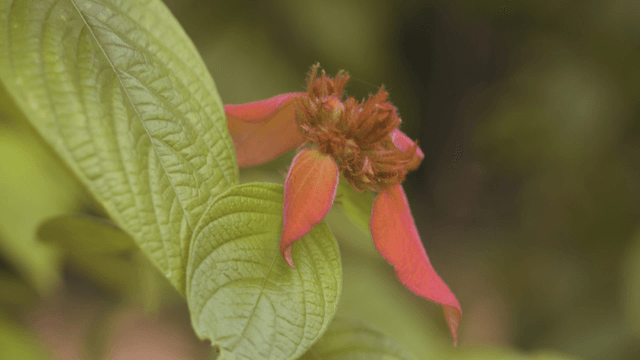 푸른 잎사귀 속의 선명한 주황색 꽃