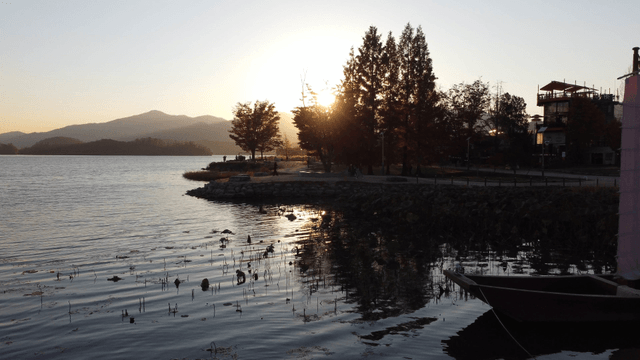 고요한 강변의 석양