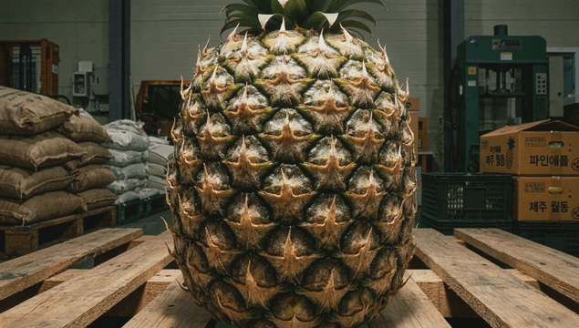 창고 안 노란색 상자에 담긴 썩은 사과들