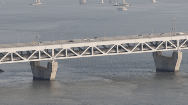 한강을 가로지르기 위해 다리를 달리는 차량들