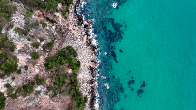 맑은 청록색 바다와 바위 해안선