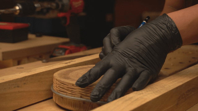 정교하게 나무 물체를 제작하는 모습