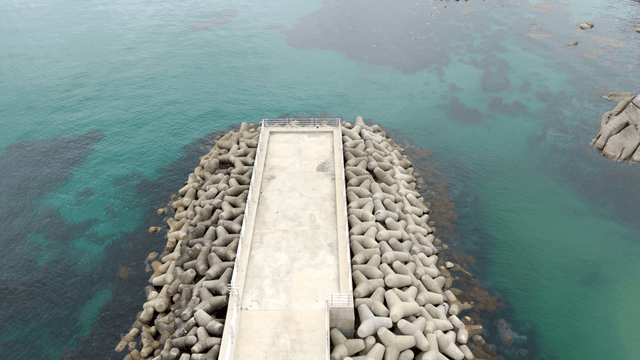 테트라포드가 있는 부두의 항공 뷰