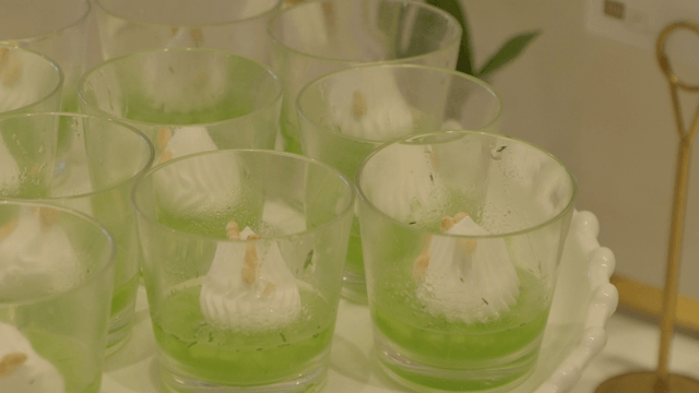 유리 그릇에 준비되는 디저트