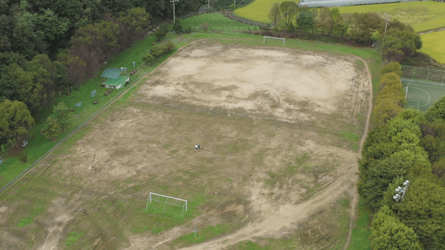 축구 선수들이 훈련 중인 경기장의 항공 뷰