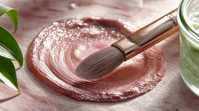 화장대 위의 메이크업 브러시와 스킨케어 제품