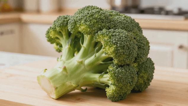 나무 도마 위에서 여러 종류의 나물 손질하기