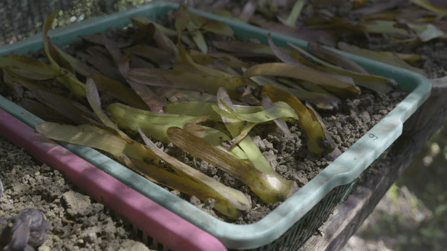 밭에서 자라는 인삼 식물을 수확하는 모습