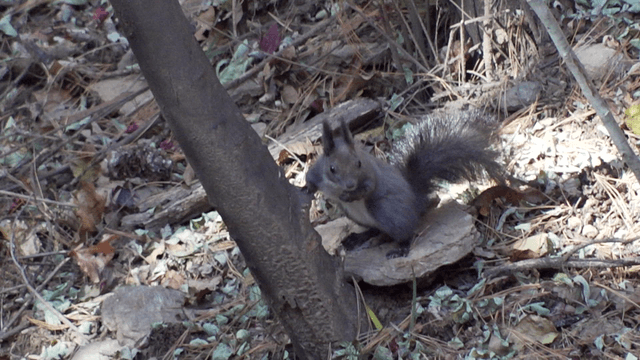 나무에서 먹이를 꺼낸 청설모