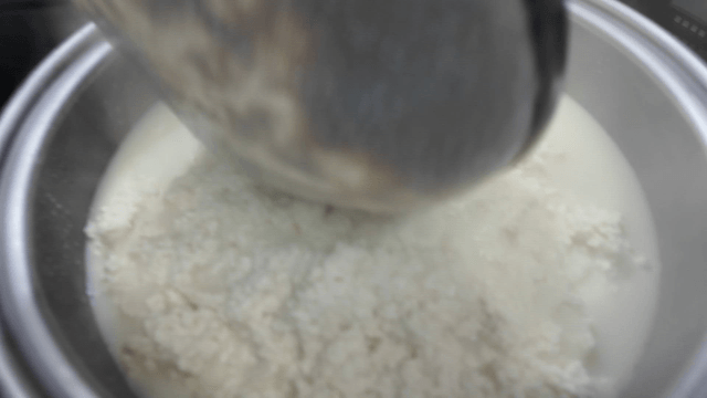 큰 냄비에 부워지는 콩물