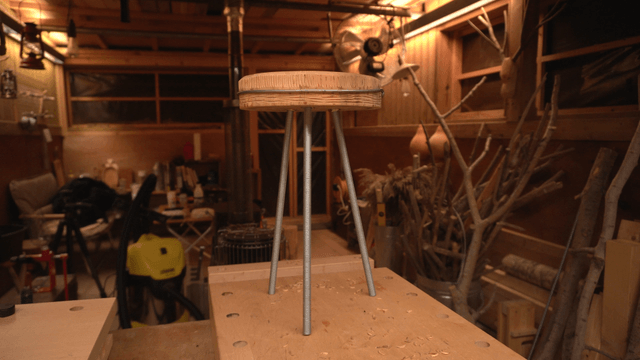 작업실의 나무 의자 상판