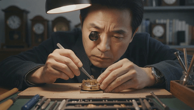 정교한 시계 부품을 수리하는 숙련된 장인