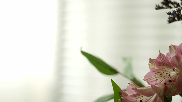 실내의 흰 꽃과 녹색 꽃봉오리
