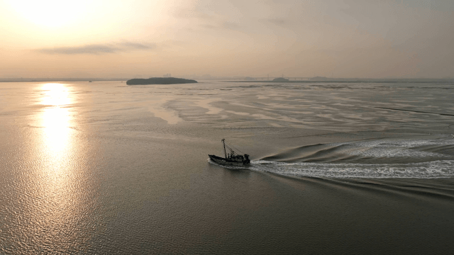 고요한 바다를 항해하는 어선