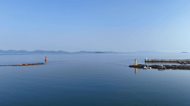 멀리 섬이 보이는 잔잔한 바다