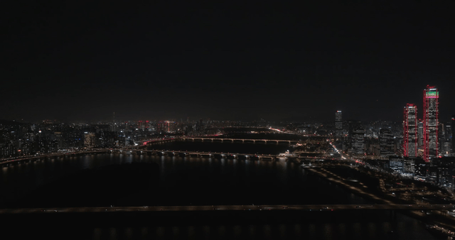 반짝이는 빌딩과 한강 다리의 도시 야경