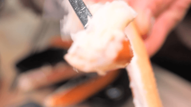 맛있게 잘 익은 게살을 숟가락으로 빼내는 모습