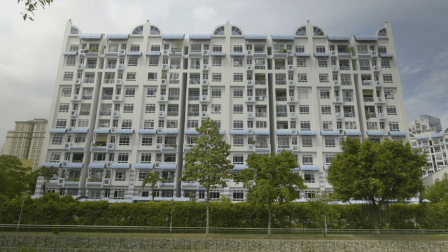 넓은 도심 공원을 앞에 둔 고층 아파트