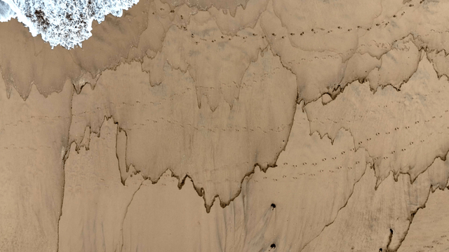 모래사장에 부드럽게 밀려오는 파도
