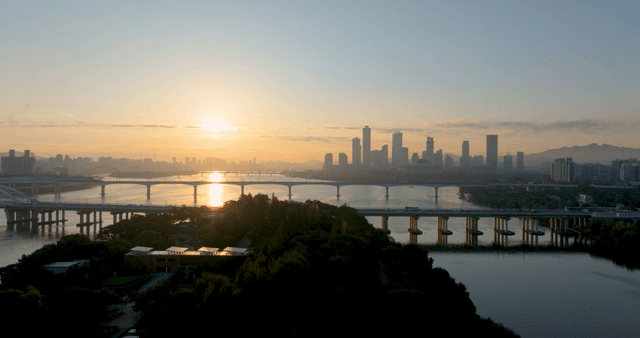 강 위의 다리와 도시 스카이라인