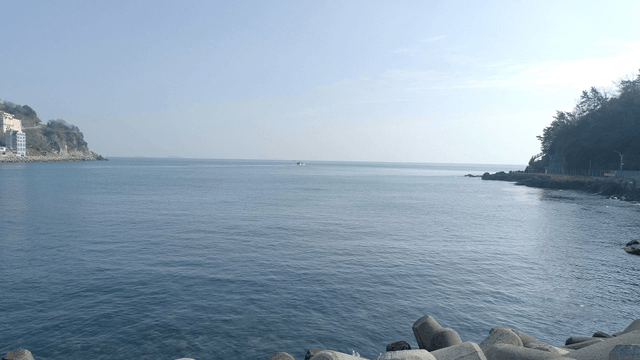 멀리 산이 보이는 넓은 바다
