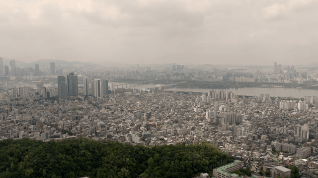 구름 낀 하늘 아래 펼쳐진 도시 풍경