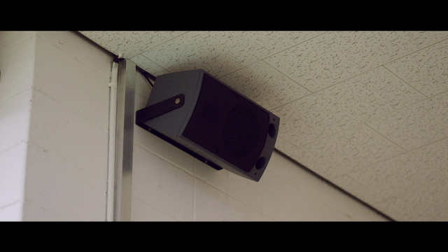철조망과 스피커가 있는 교도소 외부