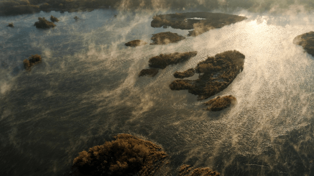 새벽 안개 낀 강 풍경