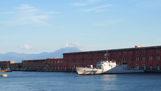 평온한 푸른 바다가 수평선까지 펼쳐진 항구에 정박된 보트들