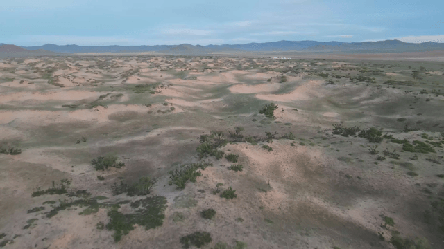드문드문 초목이 있는 광활한 사막 풍경