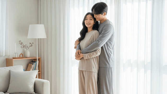 아늑한 거실에서 옷을 정리하는 다정한 커플