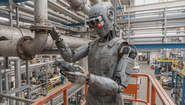 공장에서 파이프를 점검하는 로봇