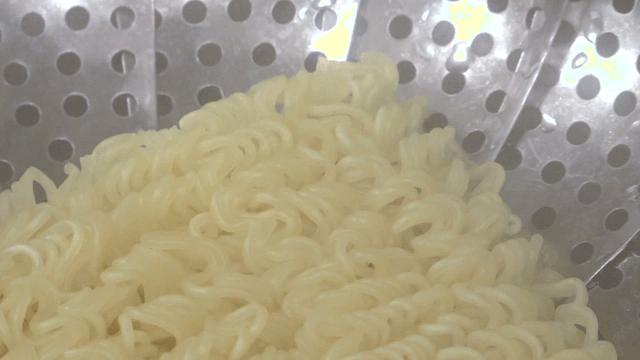 실내에서 반합 냄비에 넣어지는 라면 면