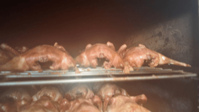 오븐에서 구워지는 로티세리 치킨