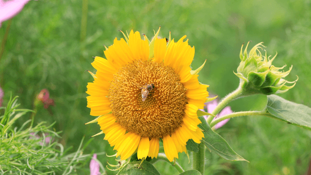활짝 핀 해바라기 위의 벌