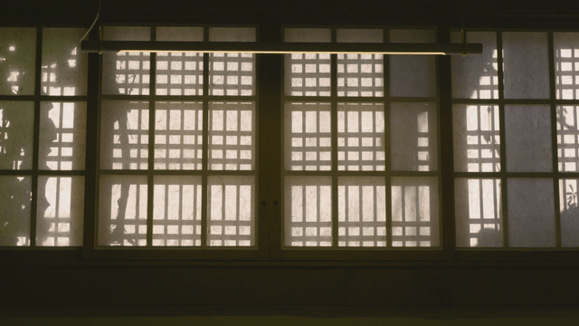빛이 목재 격자를 관통하며 비추어지는 그림자
