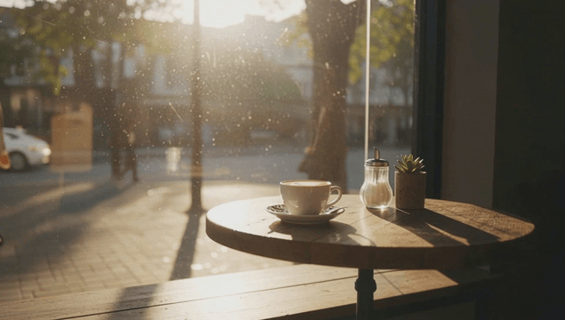 따뜻한 커피가 있는 아늑한 카페 테이블