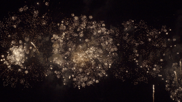 밤하늘에서 연속적으로 터지는 강렬한 불꽃놀이