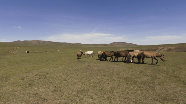흐린 하늘 아래 광활한 평야에 있는 유르트
