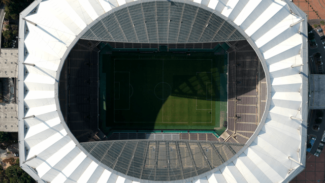 큰 지붕 아래 빈 경기장 좌석