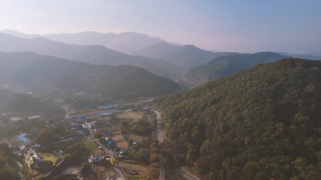넓게 펼쳐진 농촌 농지와 마을의 항공 뷰