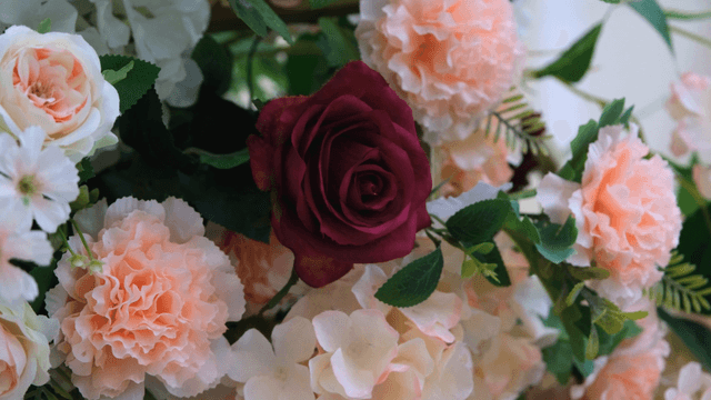 분홍색과 흰색 꽃다발